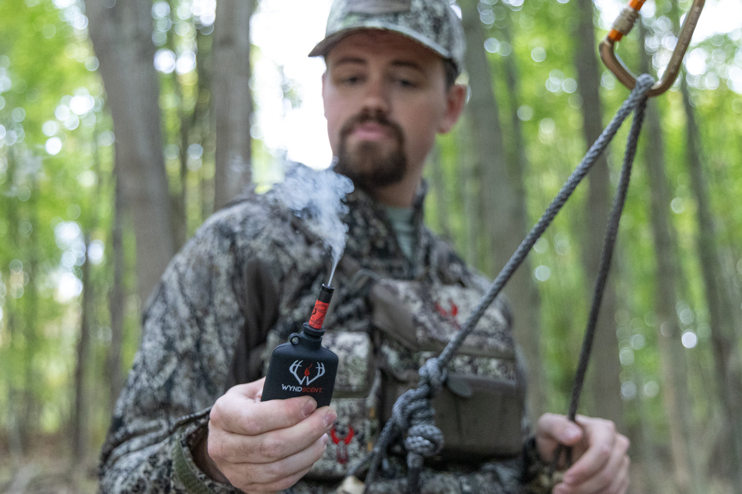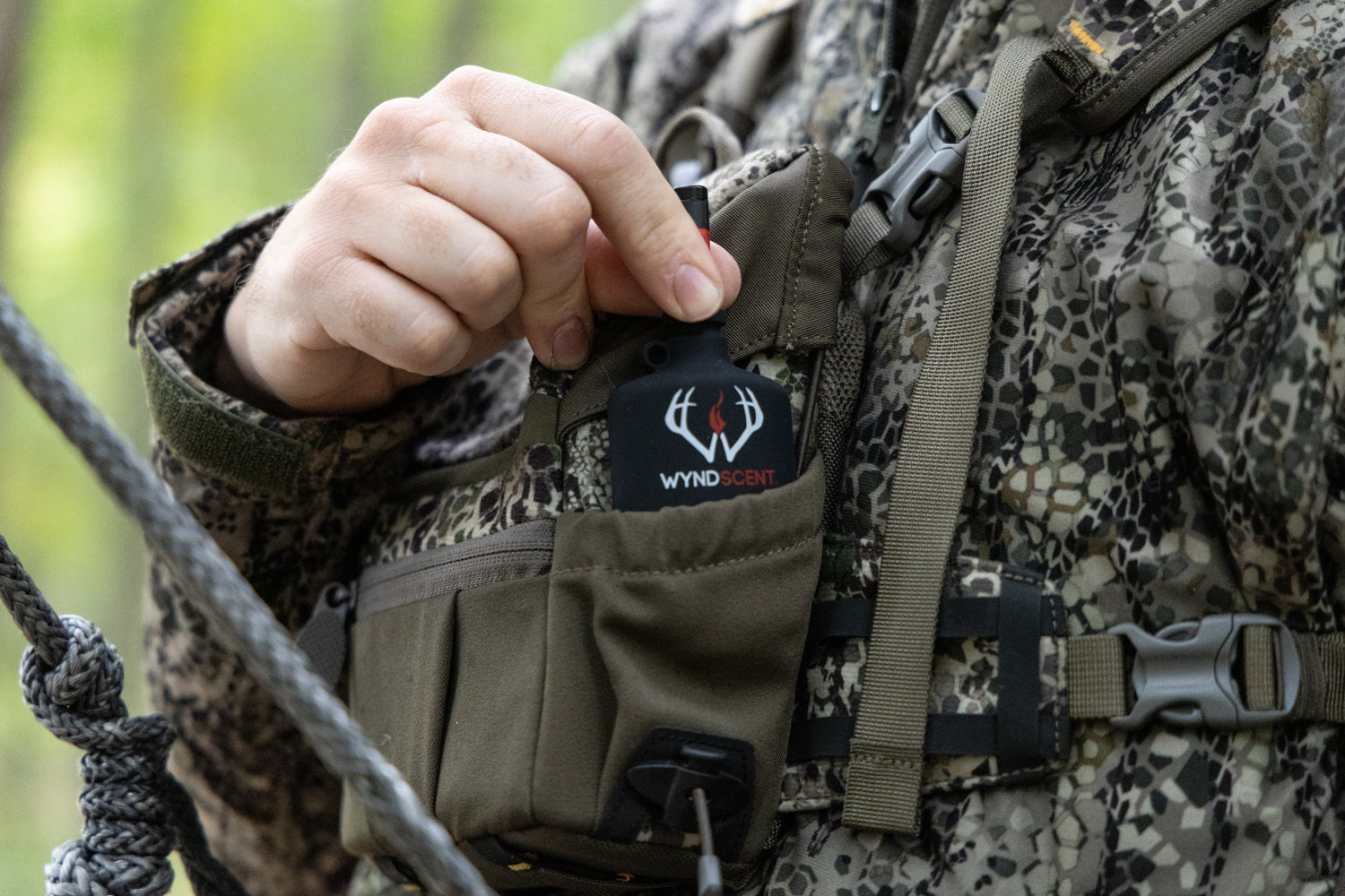 Introducing the all new Wyndscent Wyndchecker. The Wyndchecker is the ultimate, super compact wind indicator that isn't negatively effected by wet environments like powder wind indicators. The Wyndchecker is a more compact version of the Wyndscent Grenade and can be easily be stowed anywhere including your bino harness side pocket making it super easy and convenient to check the wind. We offer scent free and cover scent sticks. Check it out now on our website.